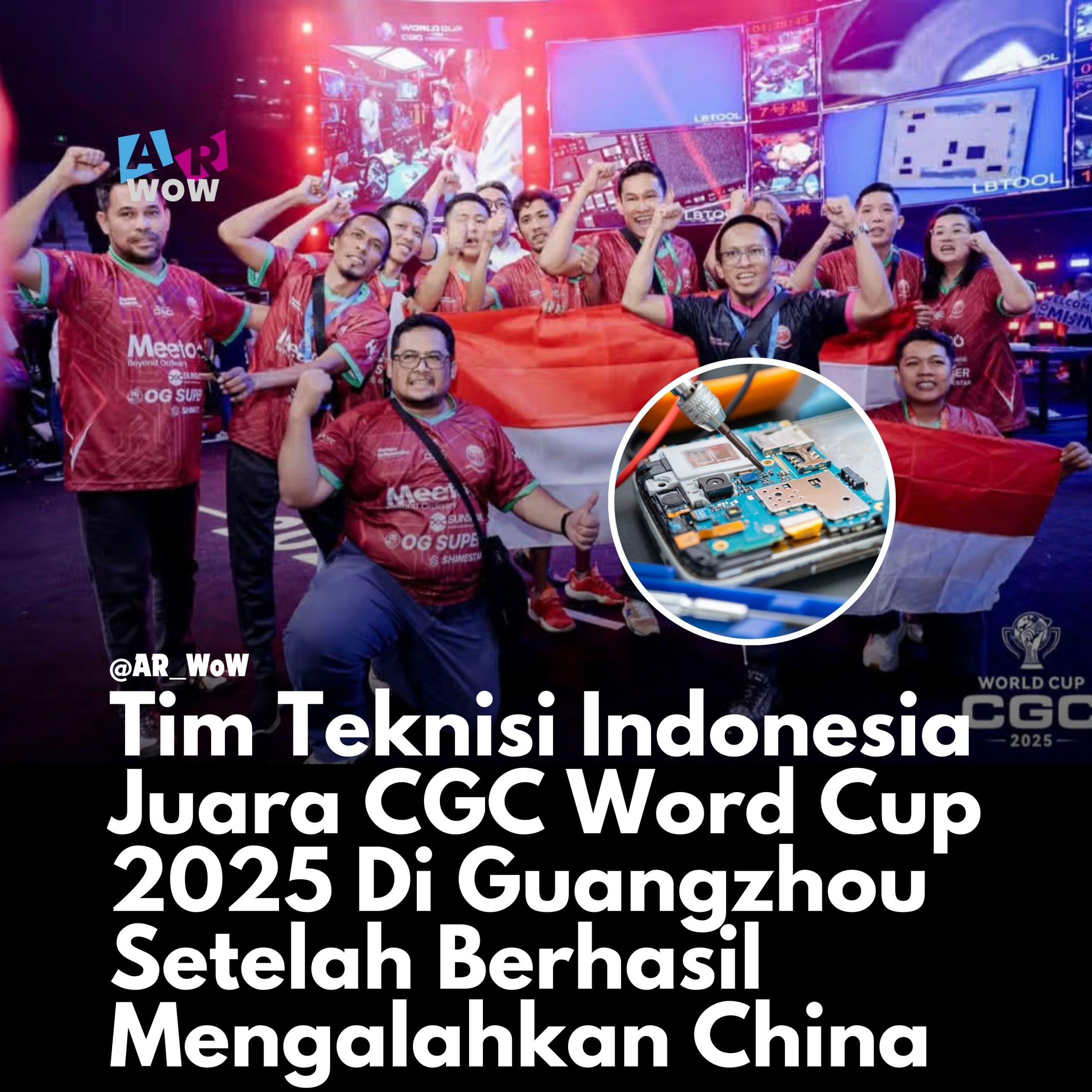 Tim teknisi Indonesia berhasil meraih gelar juara dunia kategori grup pada ajang CGC World Cup 2025 yang berlangsung pada 17–18 September di Guangzhou, China. Kompetisi